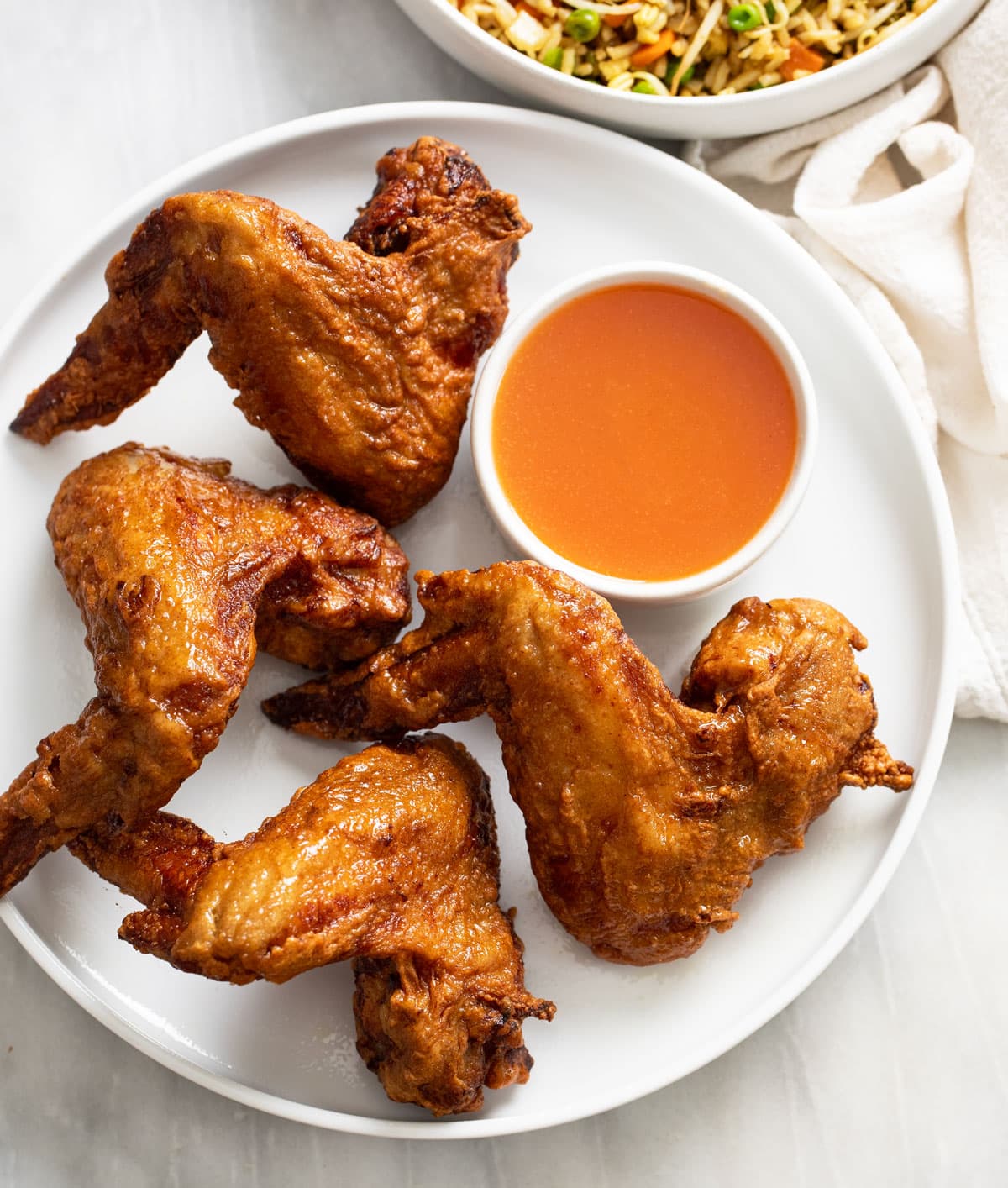 These Chinese-Style Fried Chicken Wings have the best marinade and are so easy make! That crispy, golden exterior is just like Chinese takeout – possibly even better. Be sure to serve these wings with my delicious Vegetable Fried Rice!