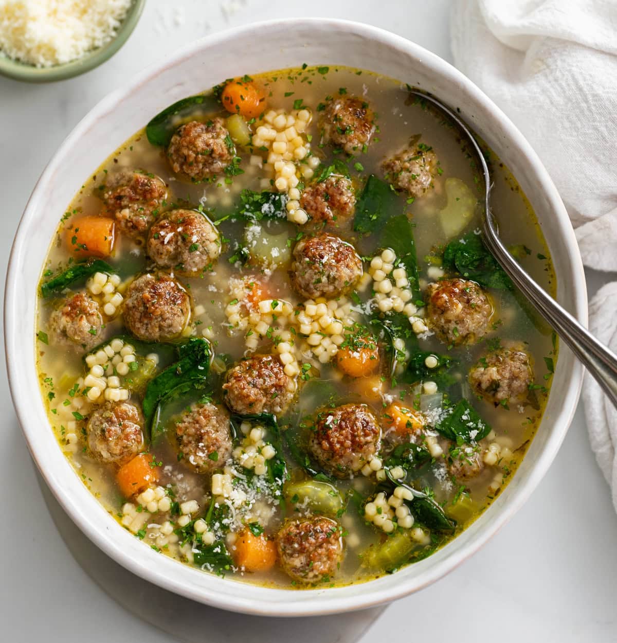 This classic Italian Wedding Soup recipe has juicy meatballs in a flavorful broth with spinach and pasta! It’s easy to make on the stove top, Crock Pot, or the Instant Pot!